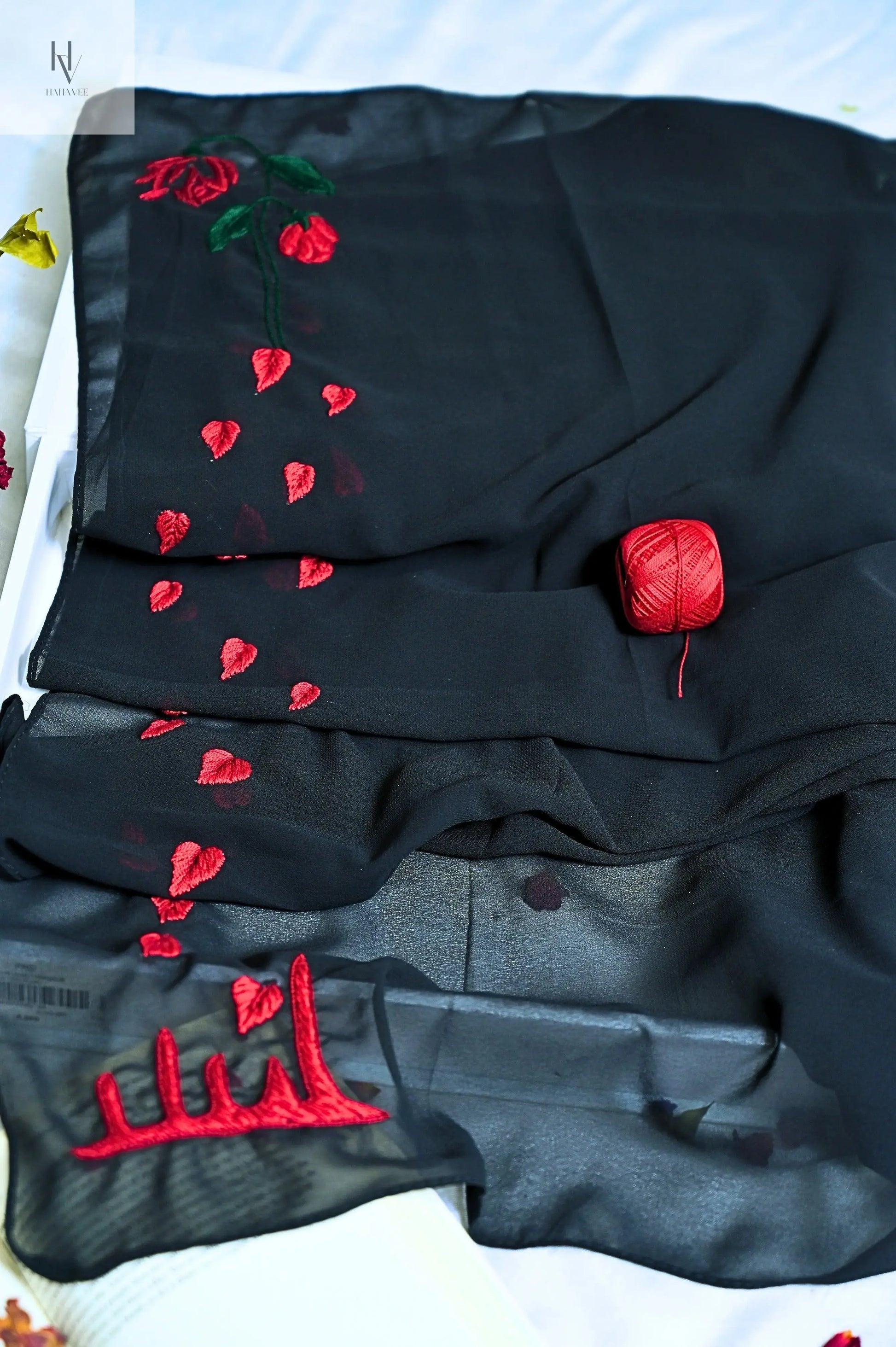 Red Rose Wilt – Blood Bloom Hand-Made Thread-work Hijab | Head-wear